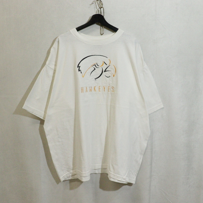 > t76 2000年代製 AM 半袖プリントTシャツ■00s 表記2XLサイズ 白 ホワイト ししゅう HAWKEYES LC アメカジ ストリート 古着 古着卸 90s