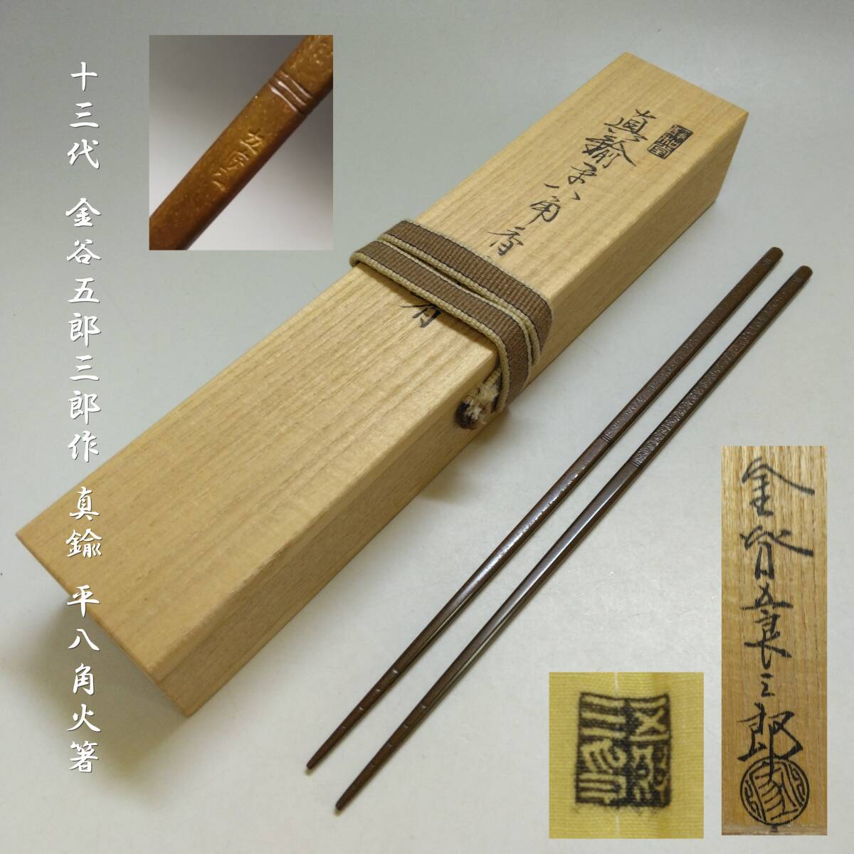 - 【S-176】十三世 金谷五郎三郎 作 真鍮 平八角火箸 共箱入 茶道具
