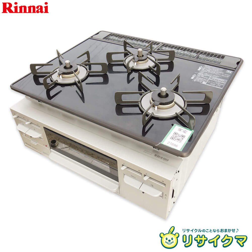 > 【中古】M▽リンナイ ガスコンロ 2021年 都市ガス 天然ガス 13A 間口60cm ガラストップ 水なし両面焼き ビルトイン RB31AM5U32SVW (27896)