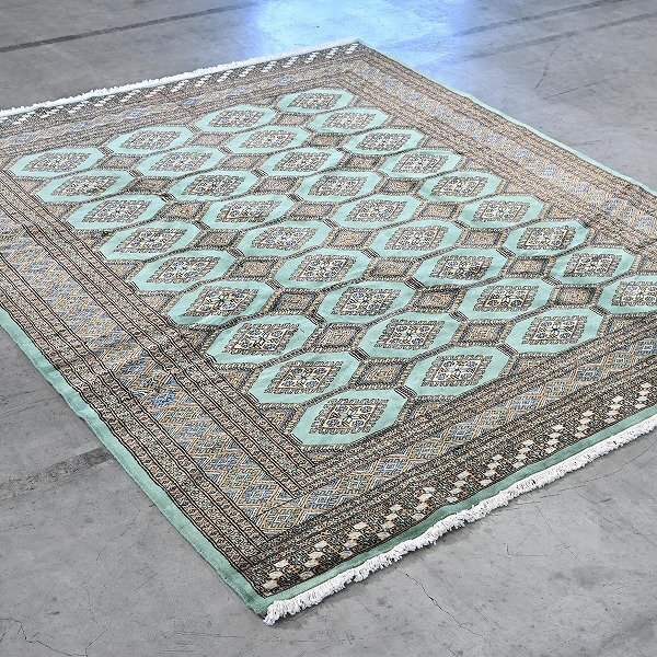 > 新品 未使用 パキスタン製 手織り ウール絨毯 ブハラ柄 ハンドノット 羊毛 ラグ カーペット オリエンタルデザイン ホテル 応接室P-41