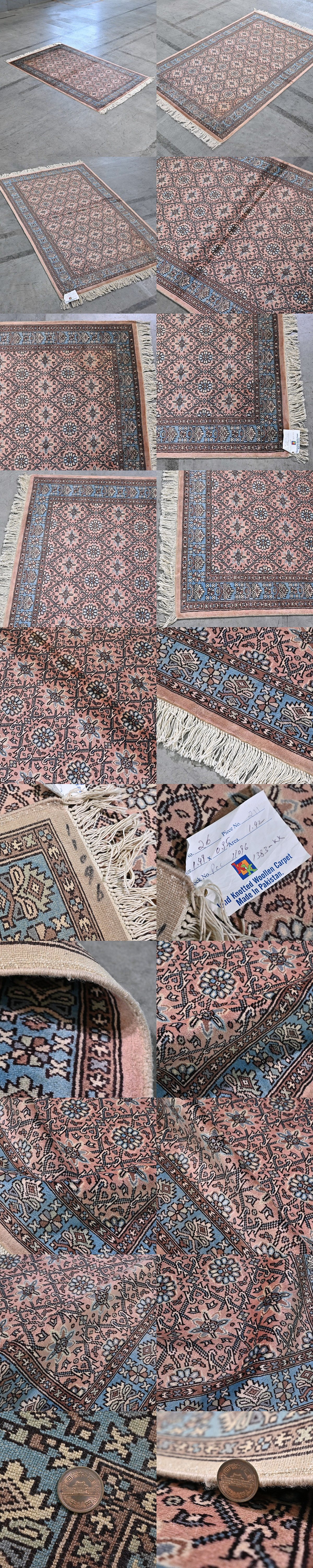 > 新品 未使用 パキスタン製 手織り ウールラグ 絨毯 メダリオン柄 ハンドノット 羊毛 カーペット インテリア リビング 応接室 ホテル P-60