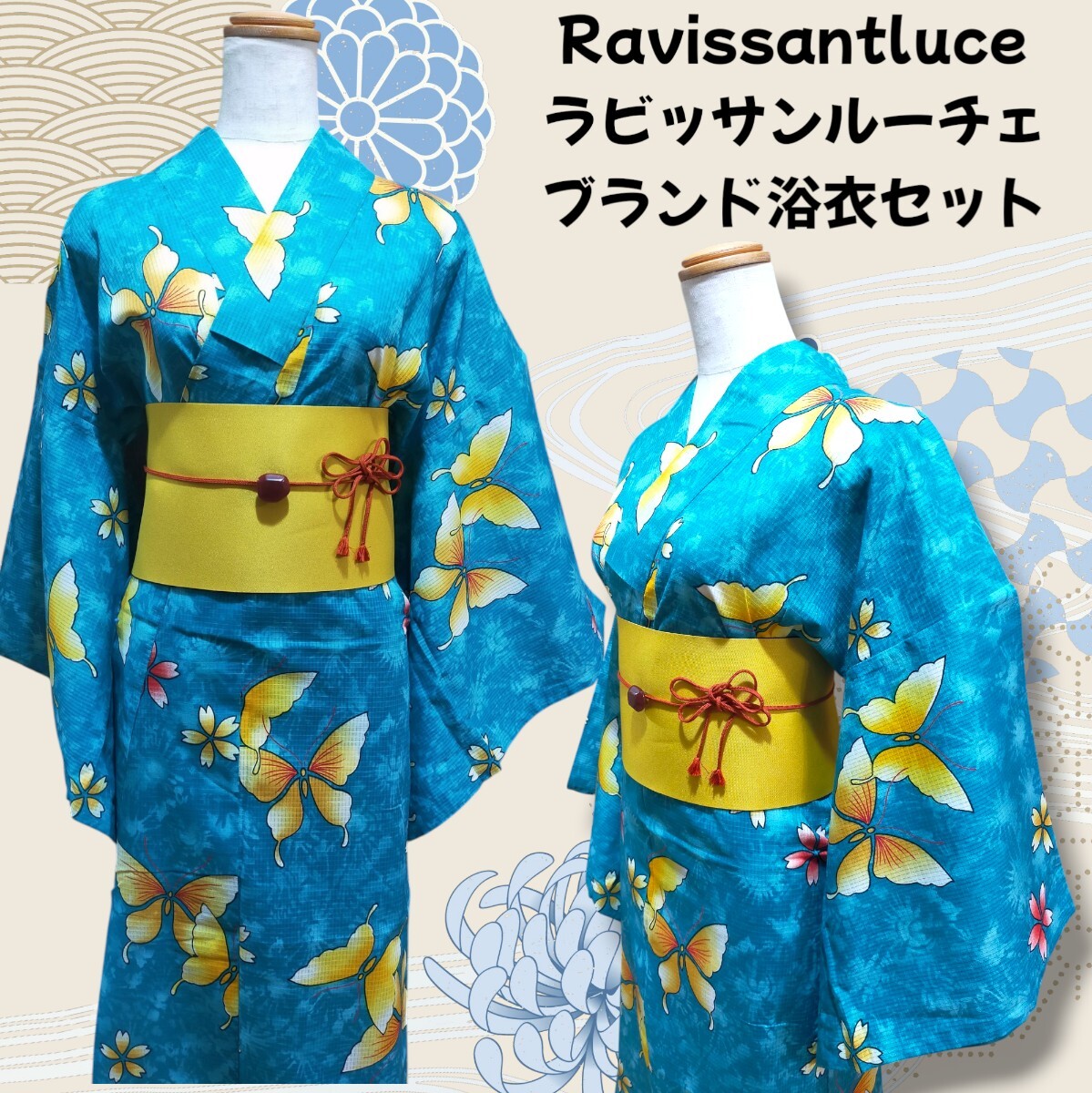 - ブランド浴衣セット ラビッサンルーチェ 蝶々柄 浴衣 半幅帯 帯締め 帯飾り
