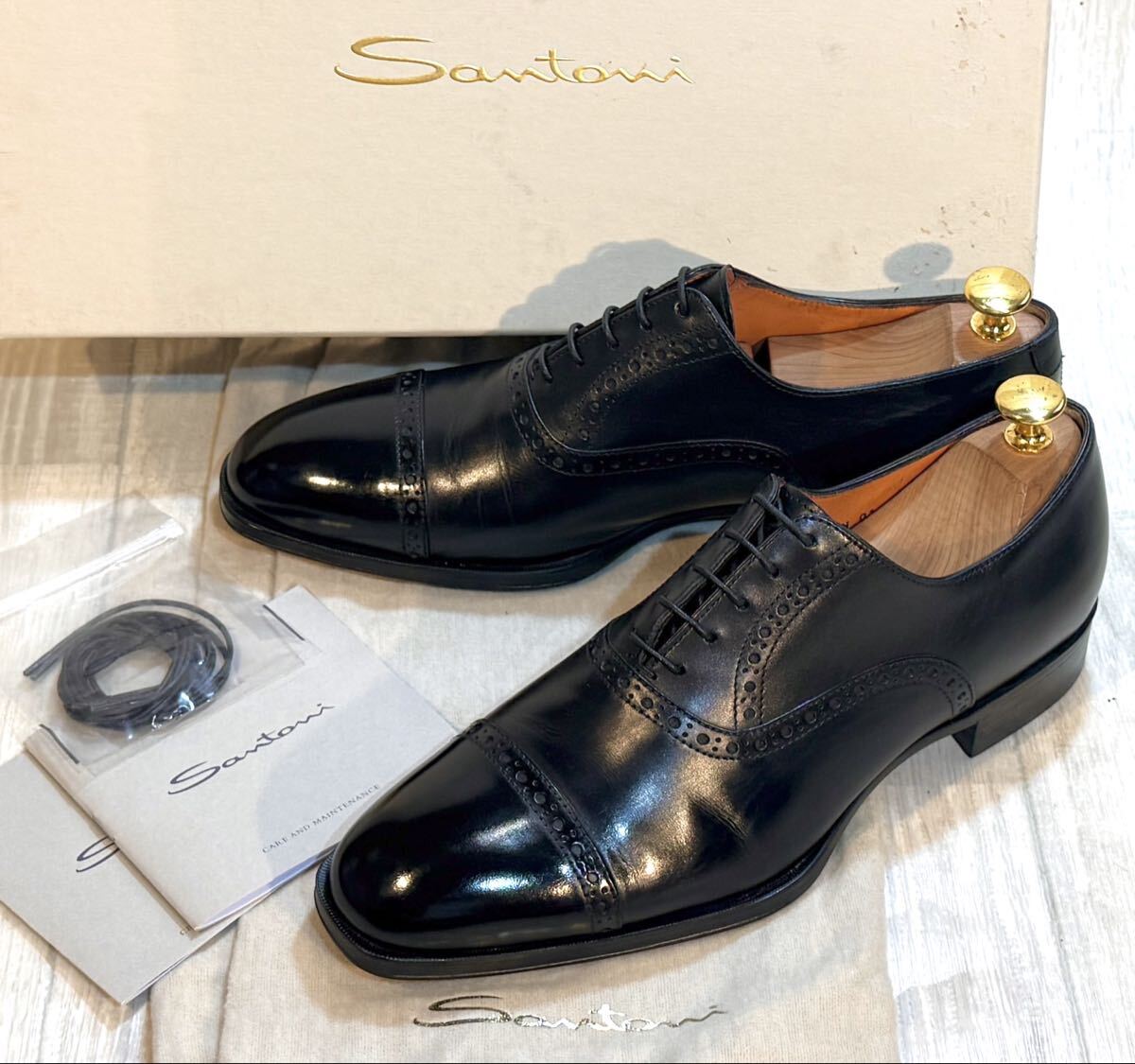 - Santoni サントーニ◆24.5cm 6◆ITALY製 ストレートチップ パンチドキャップトゥ 革靴 本革 紐靴 ビジネスシューズ ドレスシューズ メンズ