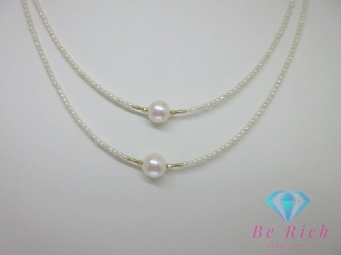 > K18 YG パール 真珠 7 mm 珠 ケシ パール 2連 デザイン ネックレス 18金 750 イエロー ゴールド ペンダント【中古】【送料無料】th13189