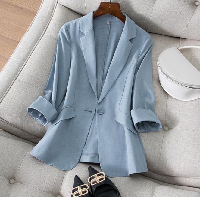> SALE 上品質 テーラードジャケット レディース 4色 スーツジャケット リネンジャケット春夏薄手入学式 通勤 おしゃれ2XL グレーブルー