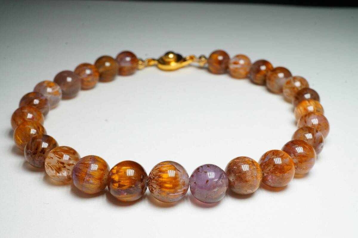 > 【即決限定価格!早い者勝ち】30年前の未使用在庫玉!カコクセナイト&ゲーサイト他 in アメジスト/amethyst /水晶 紫水晶ブレスレット18g