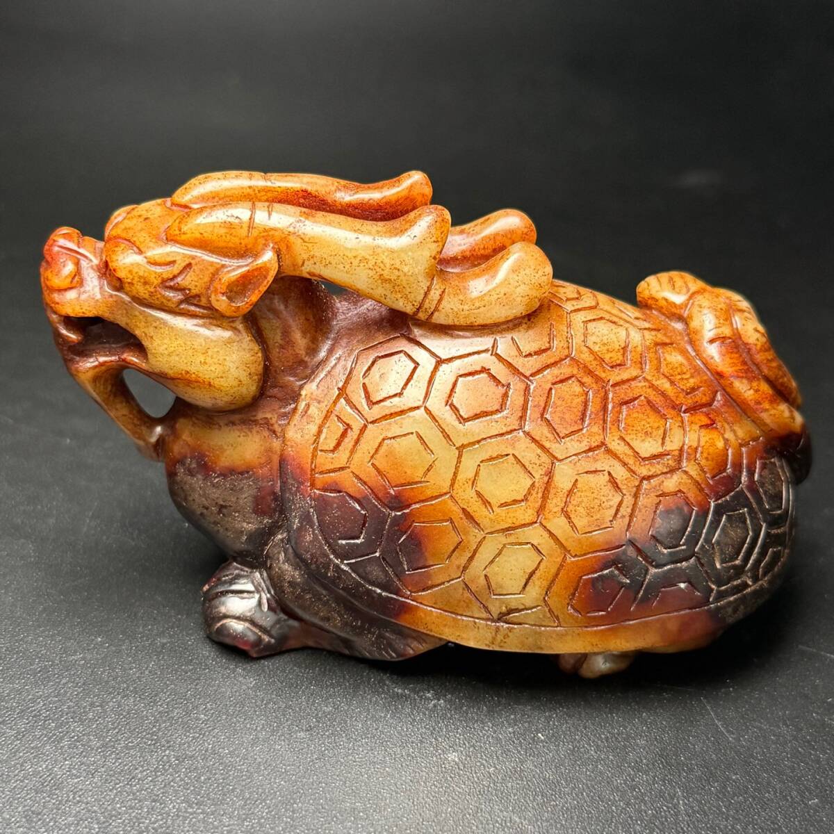 - 蔵友旧蔵出 和田玉製 細密彫 古玉 長壽富貴 龍龜 玉質細膩 希少珍品 貴重品 置物 古賞物 中国古玩 中国古美術品