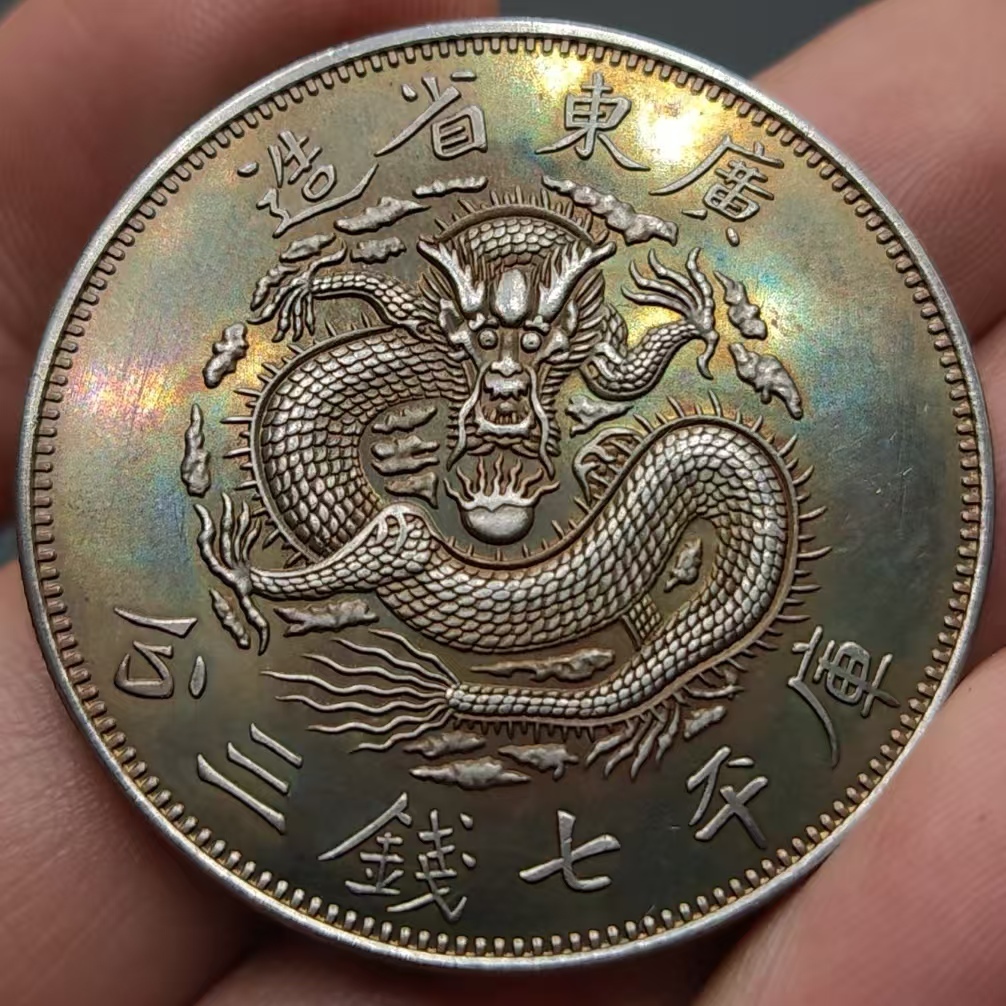 - 銀幣 銀貨 秘蔵 古錢 清代 龍幣【 七彩 光緒元寶 廣東省造 庫平七錢三分 】 中国古錢 銀貨 銀元 大洋 収蔵品 時代物 希少珍品 骨董品8.20