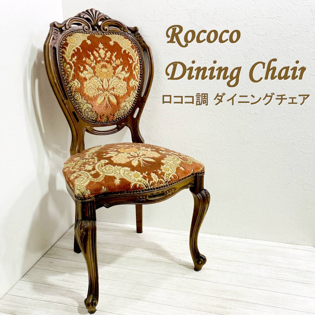 > E0ET0127【ロココ調/アンティーク/猫脚】クラシカル/ダイニングチェア/椅子/猫足/サロンチェア/古家具/ヴィンテージ