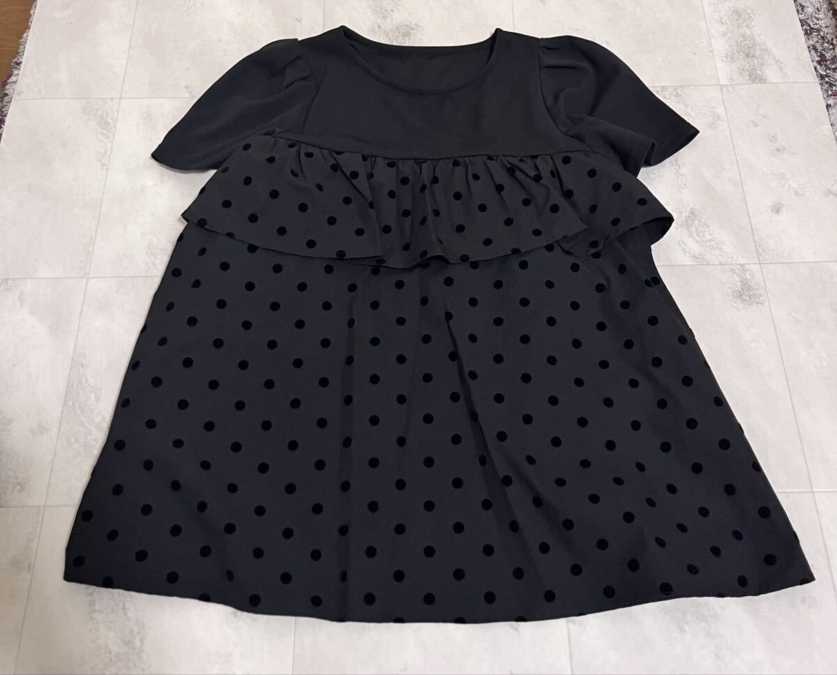- Plechur Ciel ドット ギャザー切替ブラウス フロッキードット柄トップス Lサイズ
