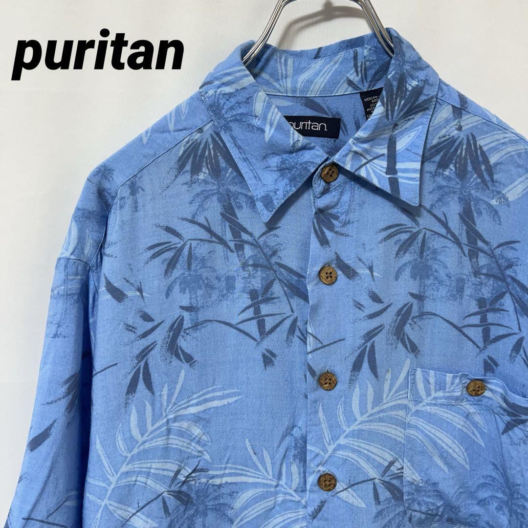 > N-5513 90s puritan ピューリタン アメリカ古着 アロハシャツ ハワイアンシャツ ボタニカル柄 レーヨン 半袖 M メンズ