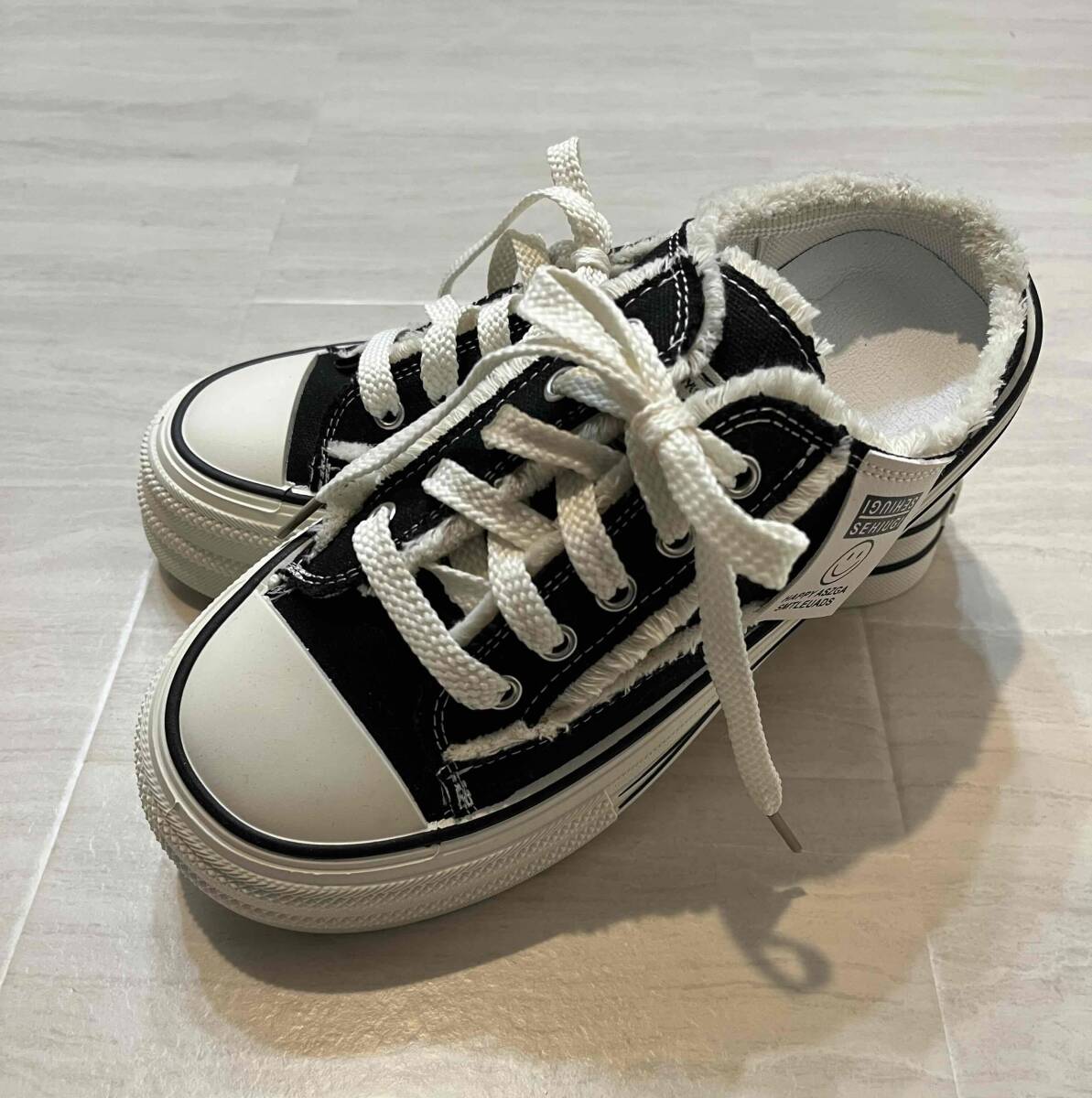 - 【訳あり】 スニーカー スリッポン 23cm 黒 厚底スニーカー レディース かかとなし 韓国 ファッション ブラック