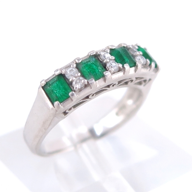 - Pt900 プラチナ リング 指輪 エメラルド 5月 ダイヤモンド 4月 13号 ギフト おしゃれ 人気 一列 シンプル 普段使い【中古】/28482/10014653