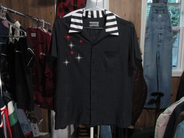 - スターバースト 刺繍 オープンカラーシャツ ミッドセンチュリー V‐CASTLE ワケアリ ロカシャツ ROCKABILLY ROCKNROLL ROCKERS