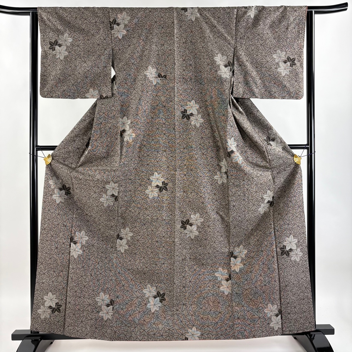 - 紬 身丈162.5cm 裄丈63cm S 袷 楓 焦茶色 正絹 秀品 【中古】
