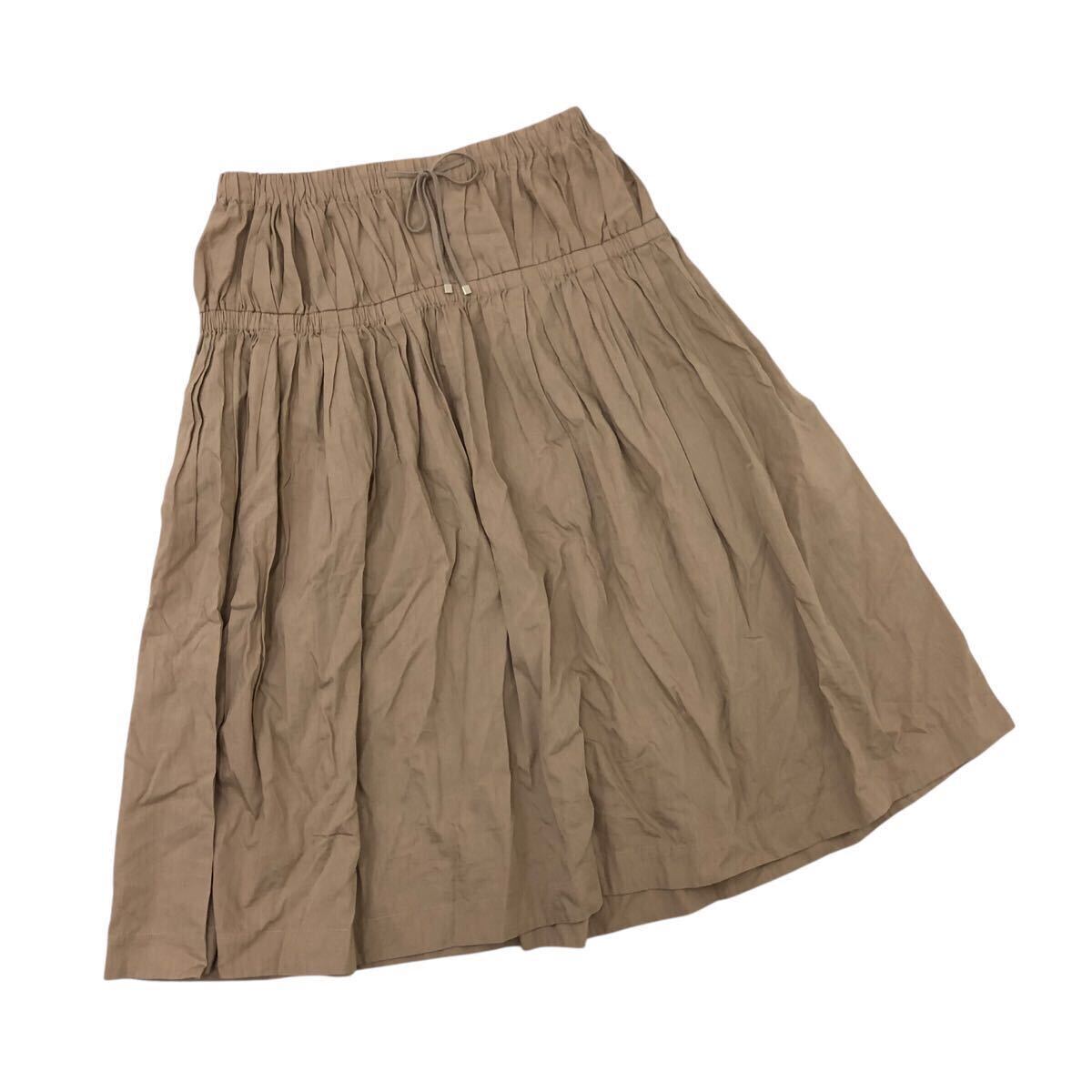> 8Nm317-46 Paul Stuart ポールスチュアート コットン ギャザー フレアスカート ひざ丈 スカート ボトムス ベージュ レディース 6
