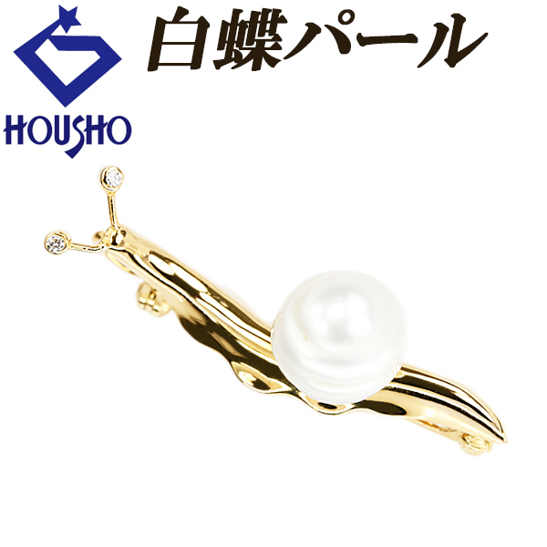 - 白蝶真珠(南洋真珠) ブローチ ダイヤモンド K18YG 2way ペンダントトップ カタツムリ 虫 動物 アニマル 送料無料 中古 宝正 902442