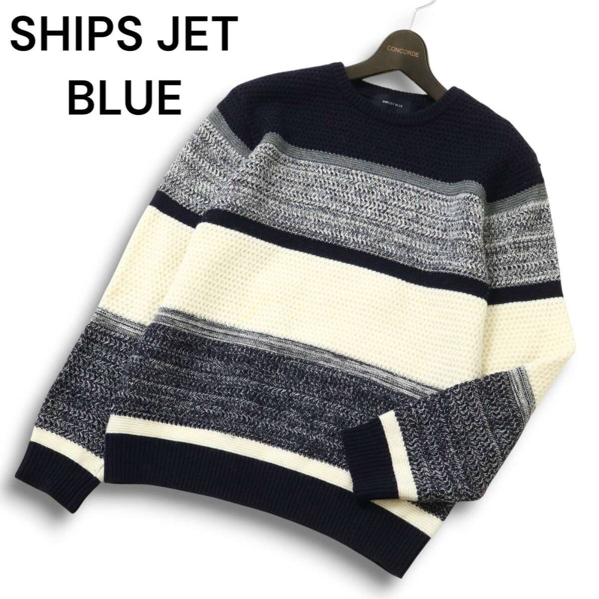 - SHIPS JET BLUE シップス 秋冬 ウール混★ マルチ ボーダー クルーネック ニット セーター Sz.M メンズ 日本製