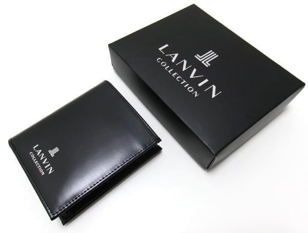 - 新品★LANVIN COLLECTION★ランバンコレクション★小銭入付き コンパクト 二つ折り財布★レザー ミニ財布★ブラック★牛革