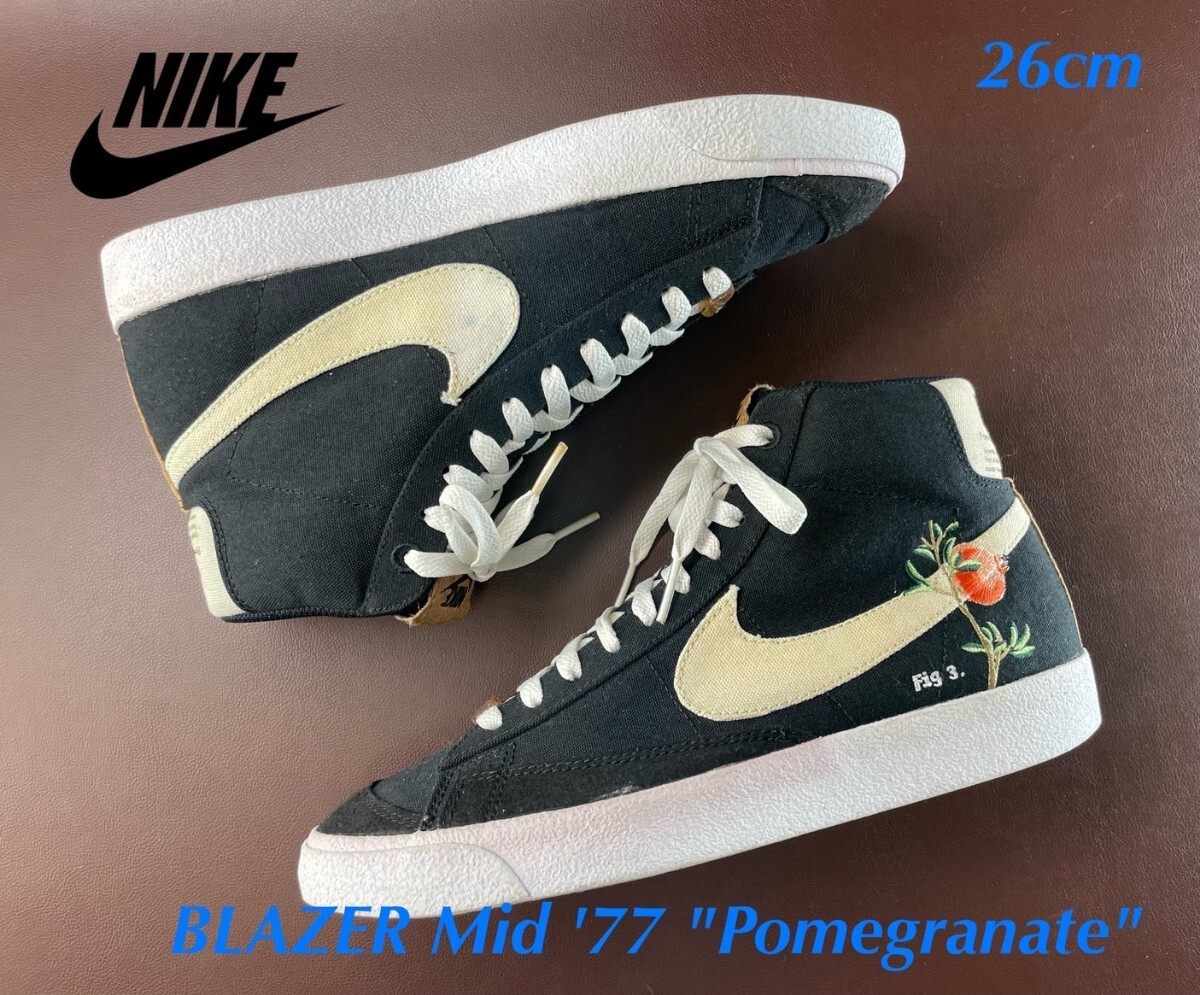 > 名機降臨!希少グラフィックデザイン!ザクロモチーフ!ナイキ【ブレザーMid'77ボムグラニトゥ】ミドルカツットスニーカー!黒 26cm/US8