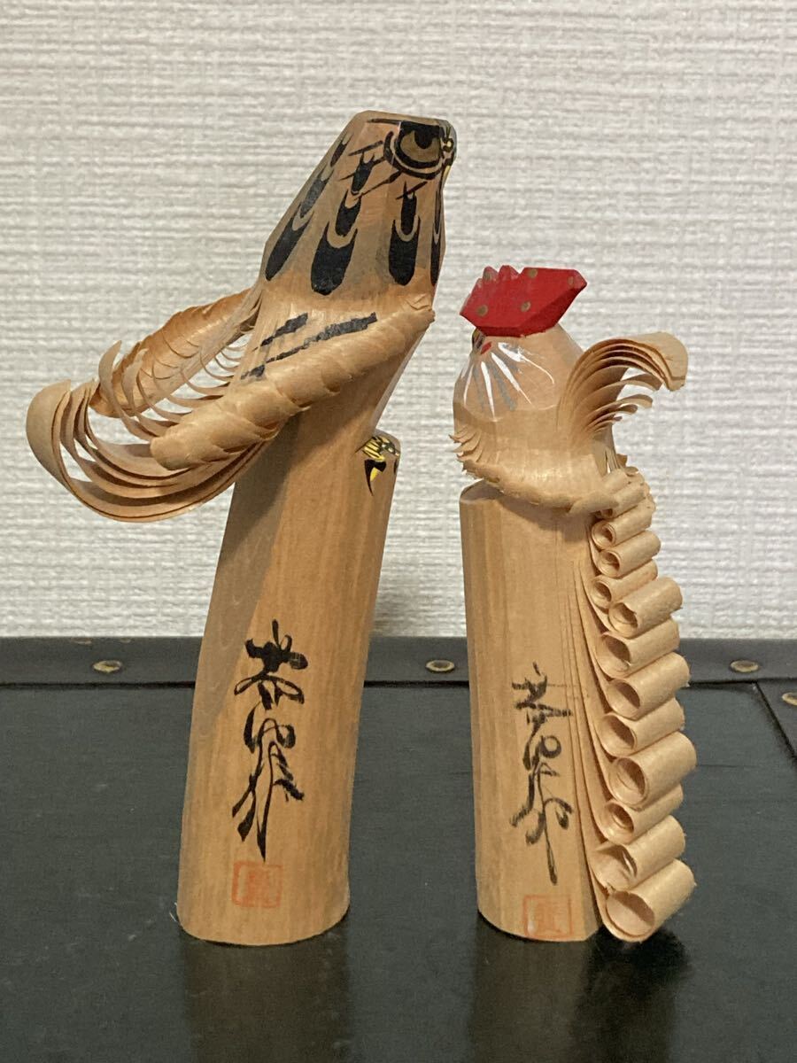 - 笹野一刀彫り レトロ 郷土玩具 民芸品 縁起物 魔除け 置物 アンティーク 木工芸 木製 尾長鶏 お鷹ぽっぽ インテリア