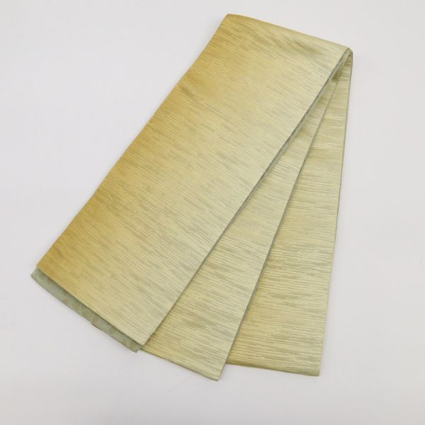 - 【半幅帯】 膨れ織り からしグラデーション柄 黄色 桜 化繊 夏着物 浴衣に♪ BY7-9