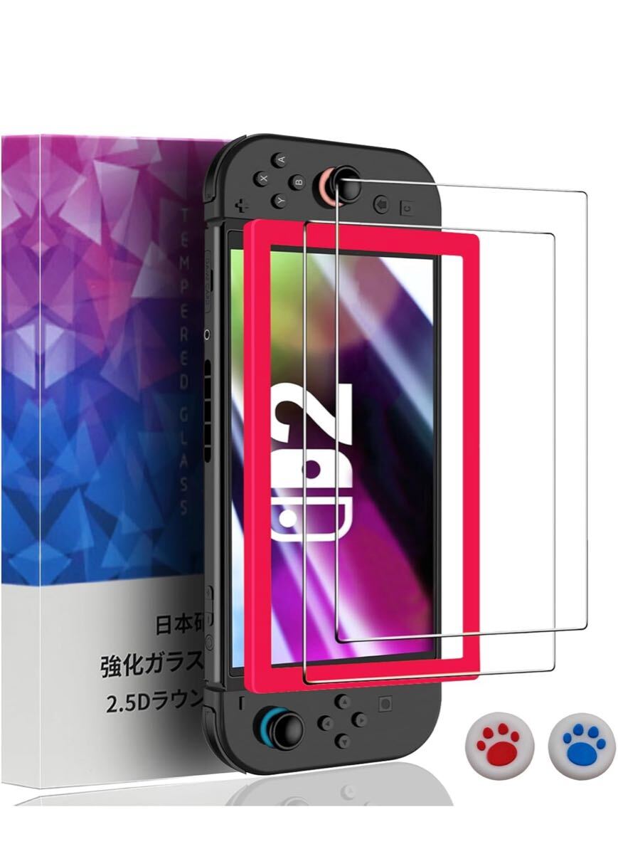 > Switch 2 ガラスフィルム【2枚セット・専用枠付・自動位置合わせ】高透過率 画面保護フィルム 全面保護 日本硝子素材 9H