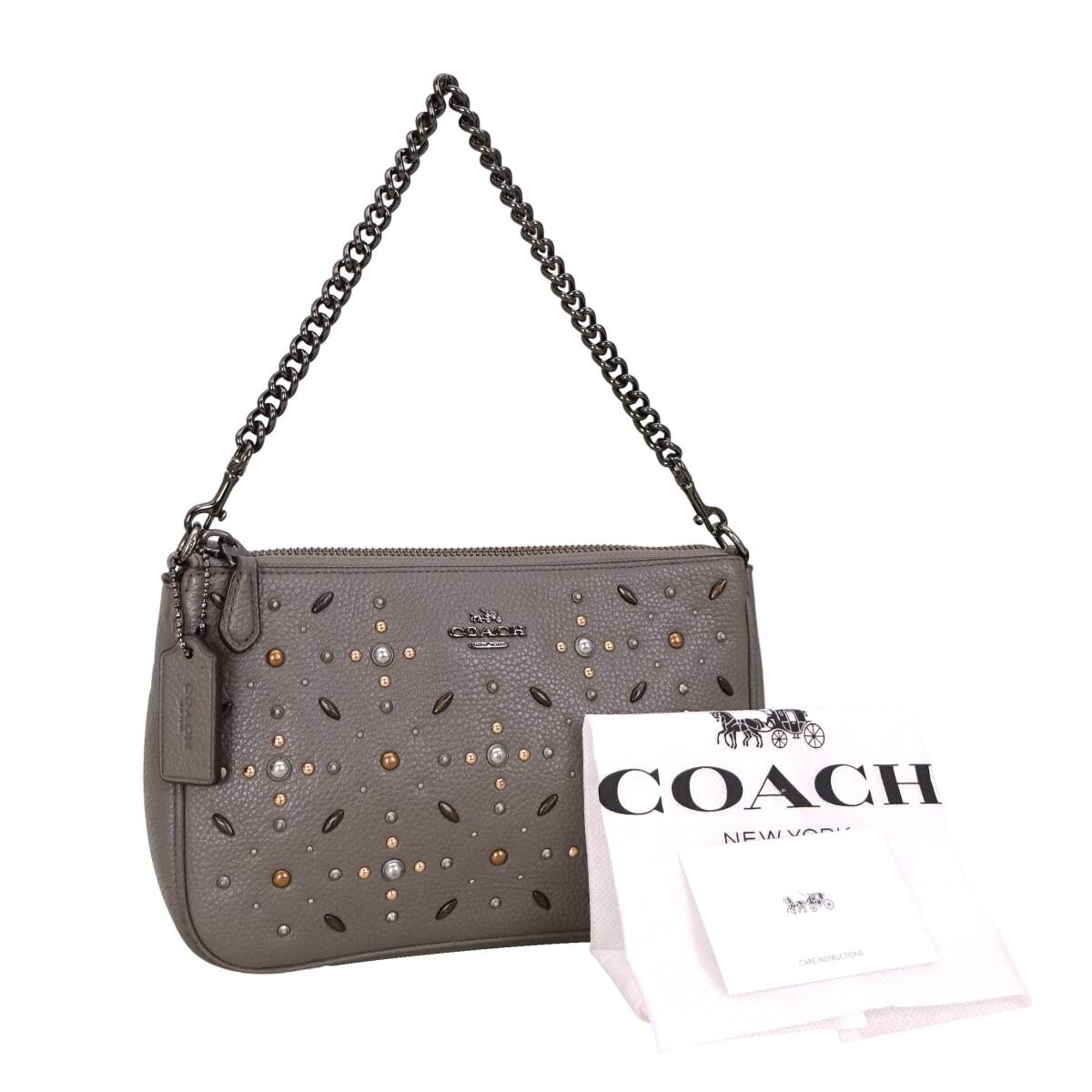 - 本物良品■コーチ■NOLITA WRISTLET 22 スタッズ デミポーチ グレーレザー 22867 アクセサリーポーチ ミニハンドバッグ ショルダーバッグ