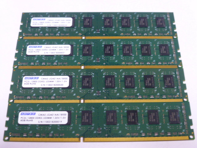 > メモリ デスクトップパソコン用 ADTEC SK hynixチップ 低電圧 1.35V DDR3L-1600 PC3L-12800 8GBx4枚 合計32GB 起動確認済みです①