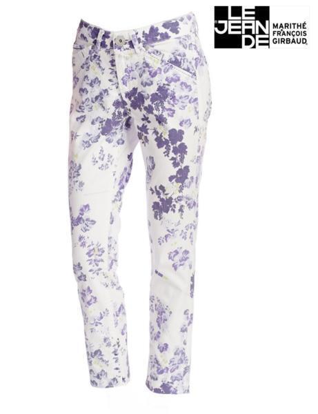 - 送料185円 MARITHE FRANCOIS GIRBAUD (マリテ フランソア ジルボー) ボタニカル柄 ストレッチ クロップドパンツ 白 サイズ SS