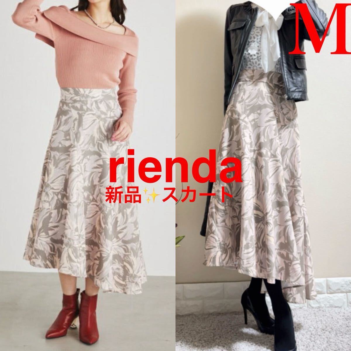 - 新品!リエンダ 定価1.4万 アシンメトリー ドラマティック 配色フラワー ロングフレアスカート M 通年 花柄