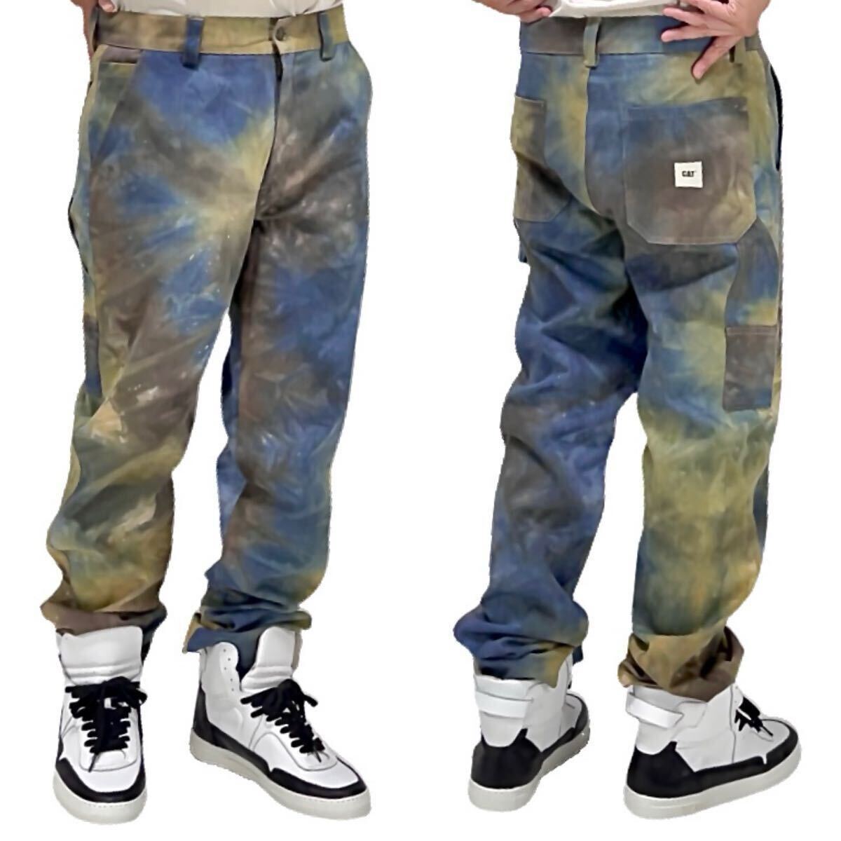 > 新品 CAT Caterpillar キャタピラー タイダイ ダーティー ムラ染め ウォッシュ加工 アメリカ建設重機 ツイル ペインター ワーク パンツ W33