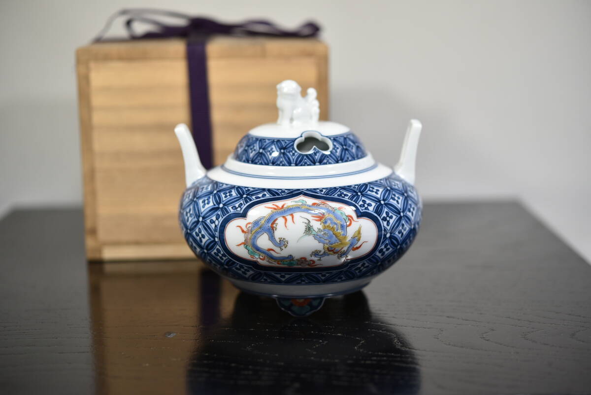 - 有田焼 染錦 竜地文 香炉 13代 柿右衛門