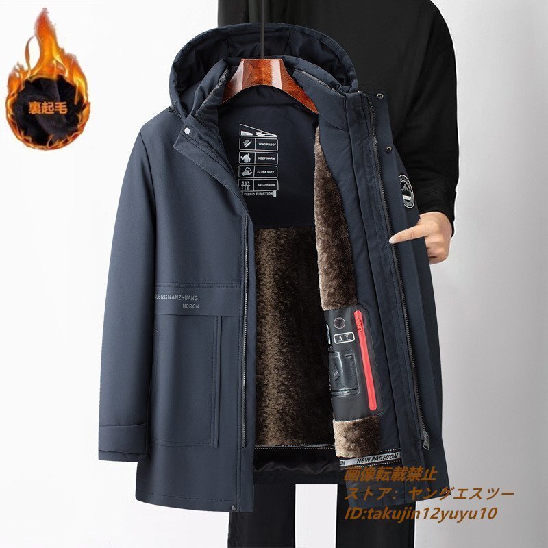 - 最上級 ダウンジャケット ビジネスコート メンズ 裏ボア パーカ 超希少*2WAY 裏起毛 コート 高級 紳士 コート ネイビー L