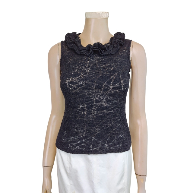 - 美品★シビラ*Shibila*黒*キレイ透かし編み&優美たっぷりフリル*ノースリーブニット*セーター*Sサイズ.7号.36