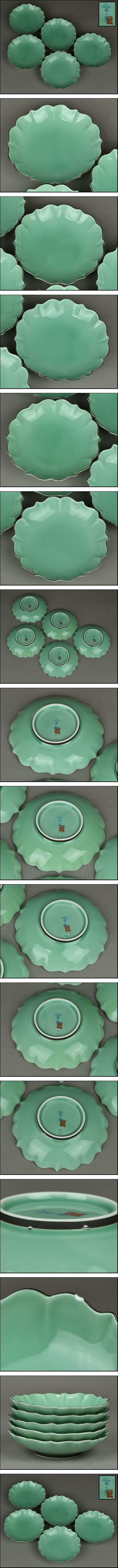 - 【ACT】宮内庁御用達【深川製】百年庵 笹青磁 銘々皿 和皿揃 五客 茶道具 A7-710D