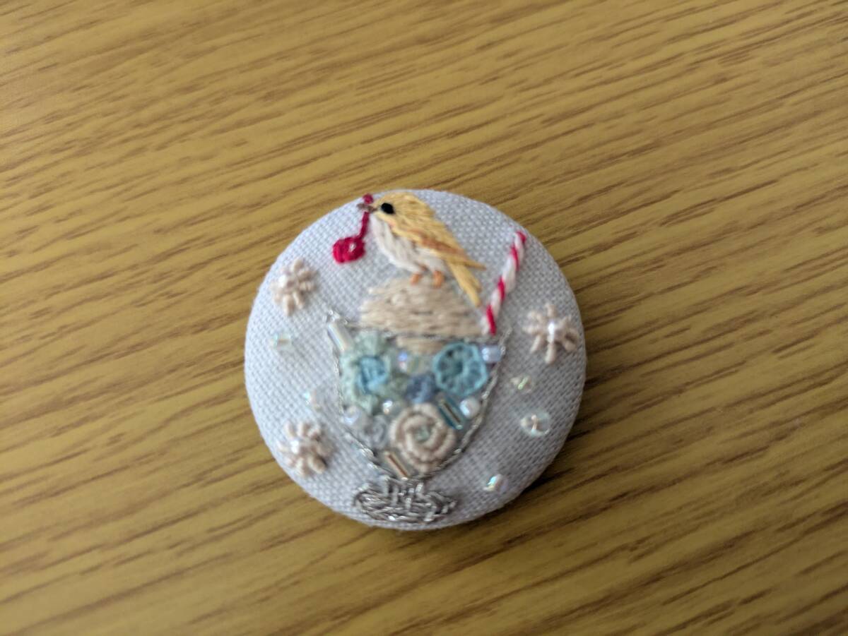 - クリームソーダと鳥さん 刺繍ブローチ