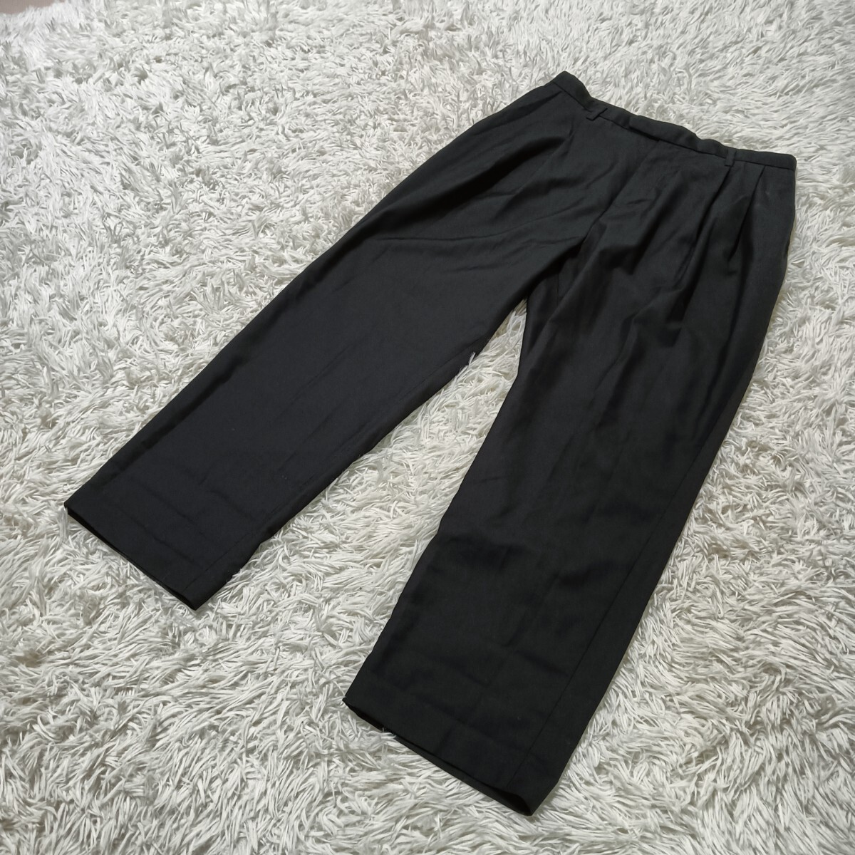 > 美品★STUDIOUS ステュディオス スラックス ツータック パンツ ボトムス ポリレーヨン ブラック 黒系 メンズ サイズ03 日本製 古着 USED