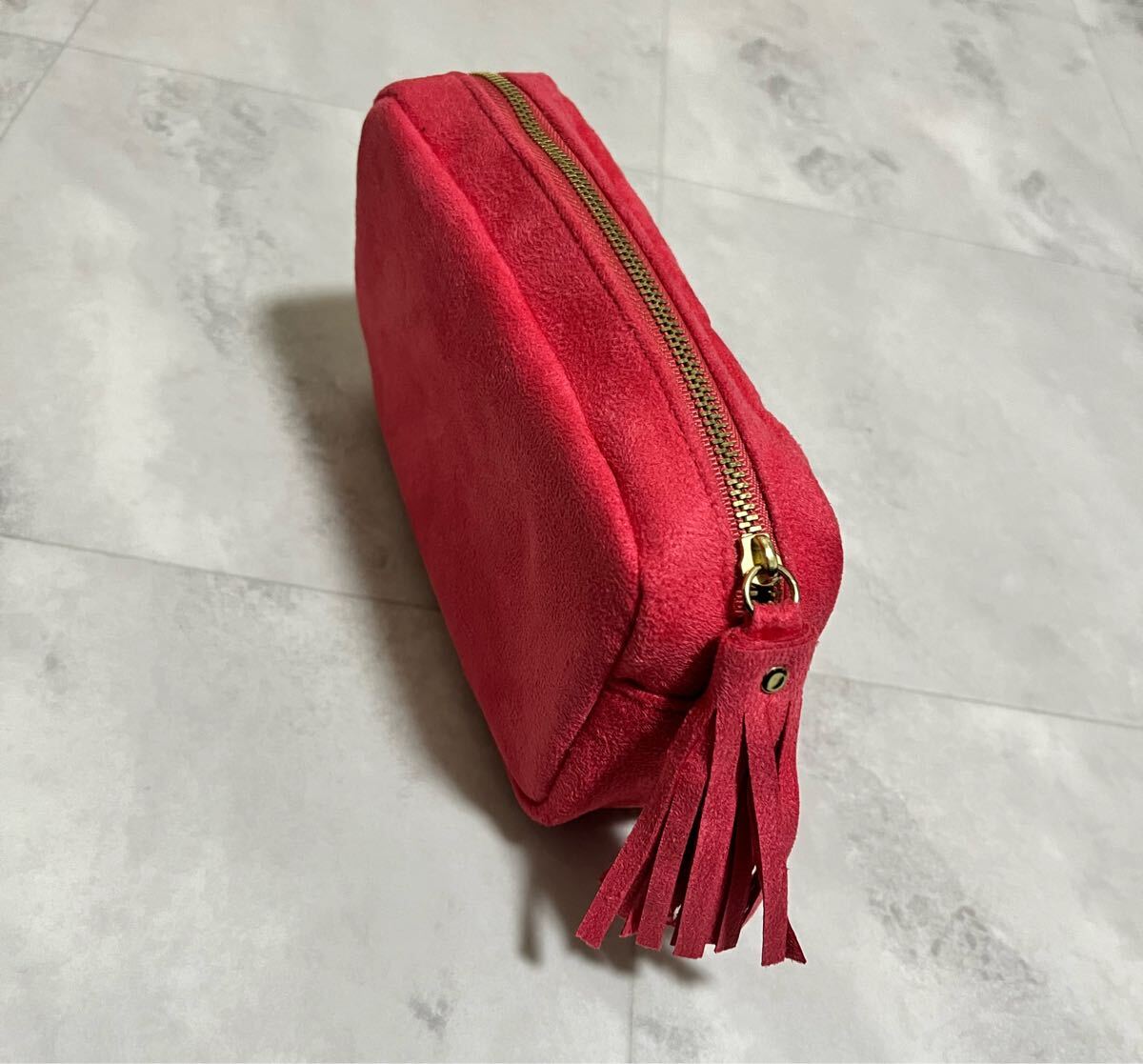 - 未使用 ザ・ボディショップ THE BODY SHOP スエード調 フリンジ ポーチ ピンク系