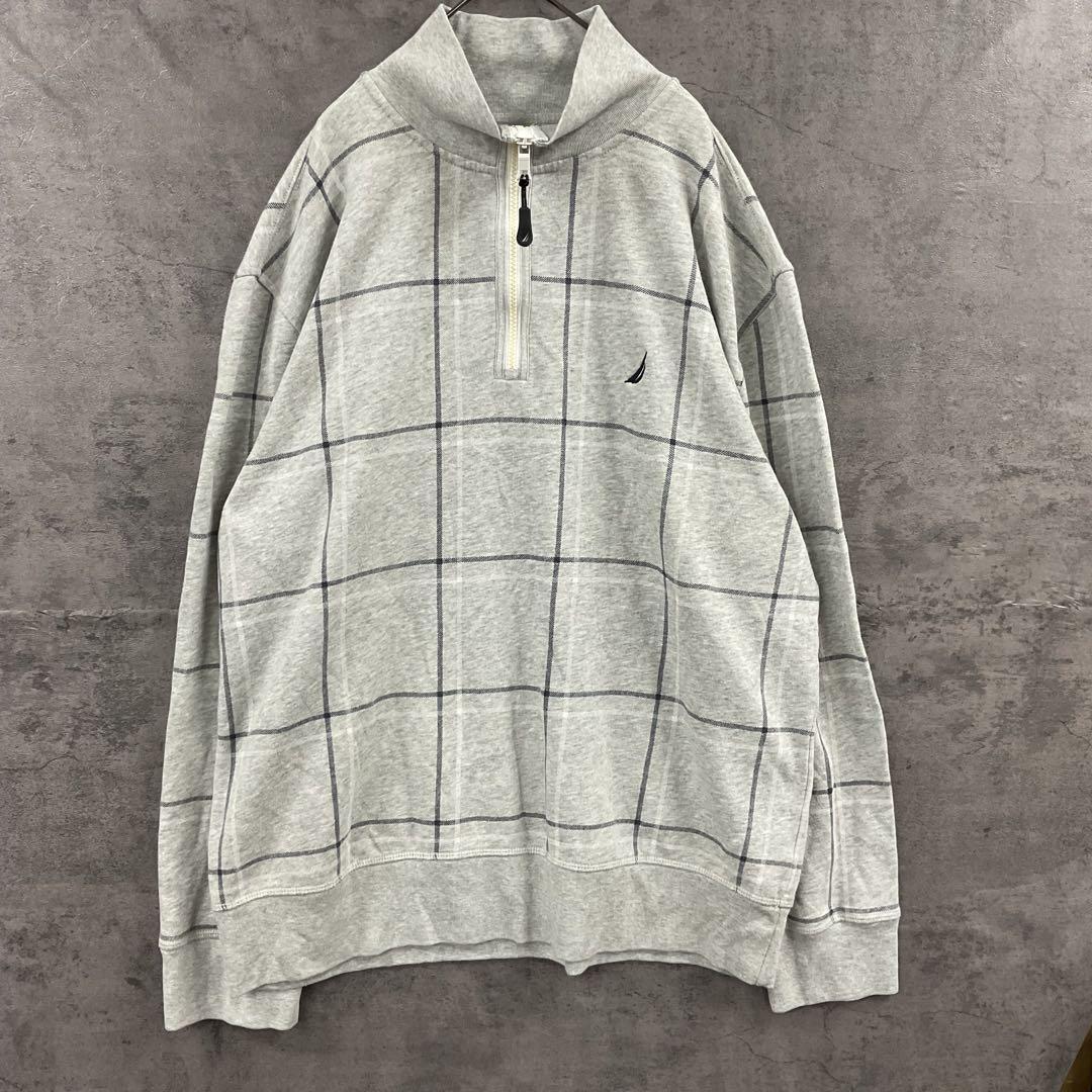- ノーティカ ハーフジップスウェット トレーナー 灰色 XL チェック【5387