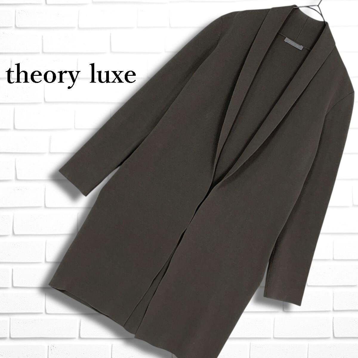 > ◆良品◆ theory luxe セオリーリュクス コットン ニット 羽織り 長袖 ロング カーディガン カーキ系 レディース 38 ◆送料無料◆ 4185H□