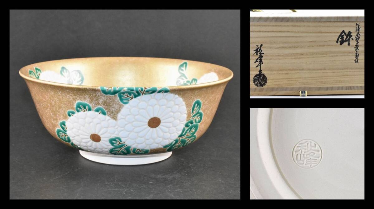 - ▲楠廸庵▲仁清金砂子置上菊紋鉢 中村秋峰作 菓子鉢 茶道具