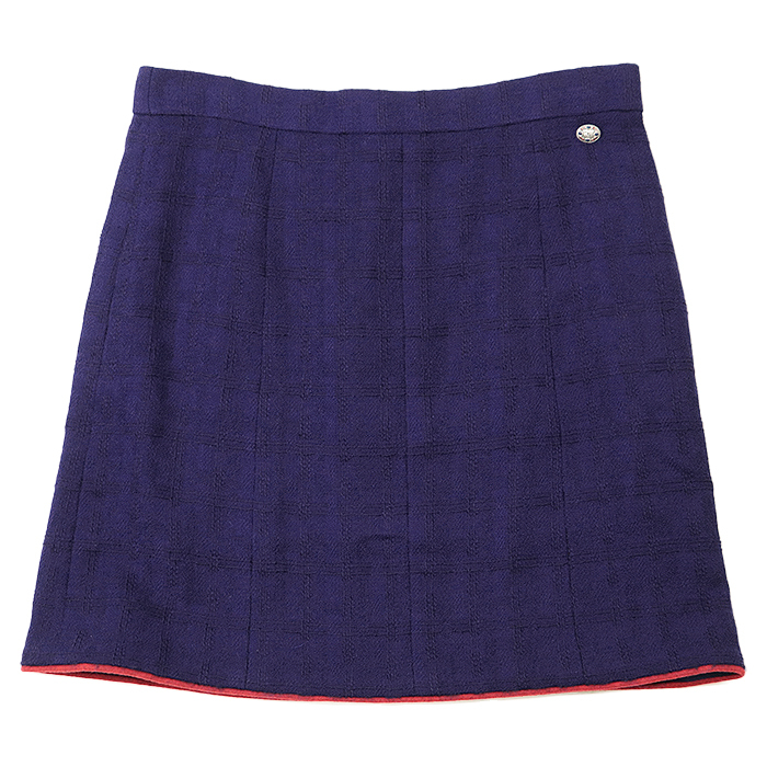 - 【SALE】CHANEL シャネル スカート P51808 ツイード グリポア ロゴ COCOマーク チャーム ウール100% ボトムス レディース 44 紺 赤 仏製