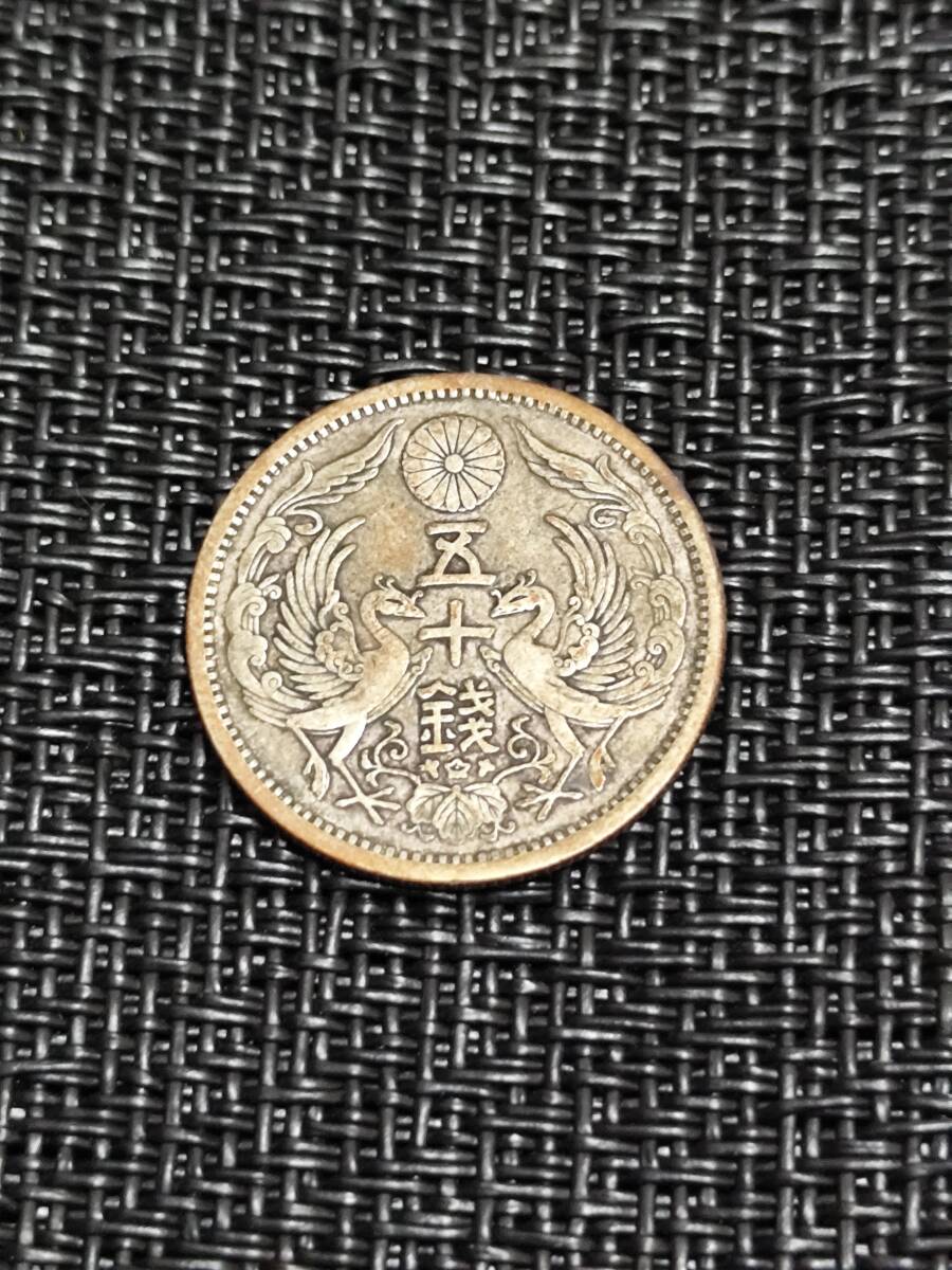 > 古銭 旭日 小型50銭銀貨 大正12年 重量約4.90g 直径約23.4mm 厚み約1.3mm 銀 シルバー 47