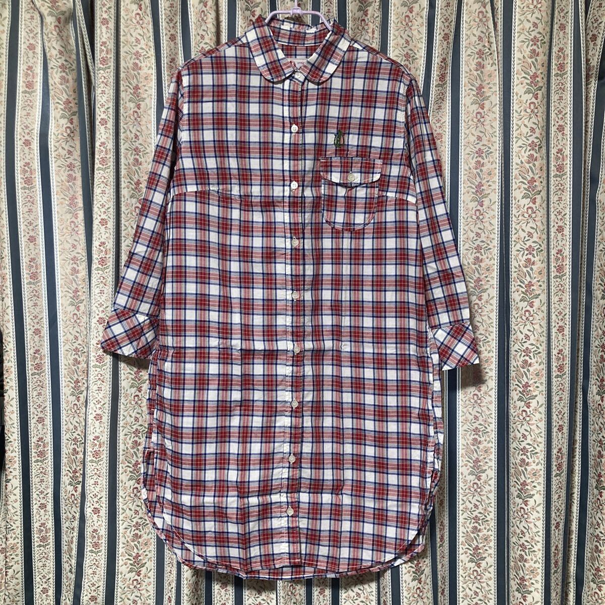 - ヒステリックグラマー HYSウーマン刺繍 丸襟 チェック シャツ 七分袖 ブラウス チュニック ガールロゴ シャツワンピース