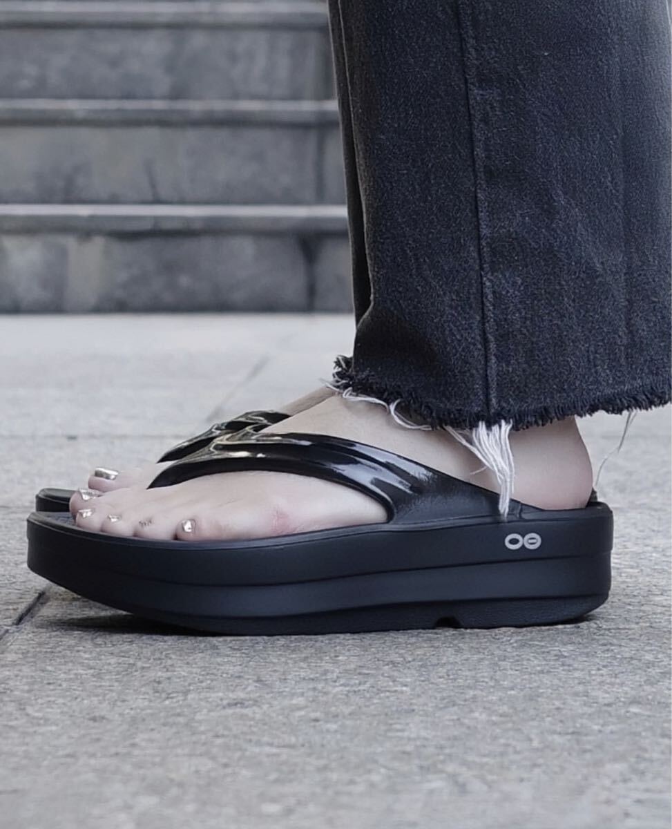 - 「新品未使用」ウーフォスOOmegaウーメガ リカバリーサンダル 厚底ブラック 24センチ EU38