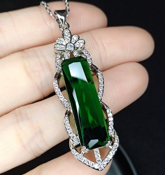 - 綺麗 エレガント ペンダントトップ 大粒 緑ジルコン キラキラ メッキ アクセサリー チェーン無し
