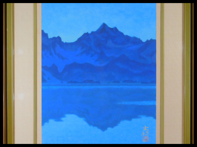> 関主税 黎明(幻想 山 風景画)日本画(彩色)紙本 P10号 額装 共シール 専用紙箱 日本芸術院会員 日展理事 s25051110