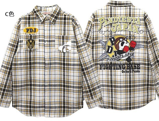 > PDJ FIGHTERチェックシャツ◆PANDIESTA JAPAN C色 Lサイズ 533602 パンディエスタジャパン パンダ ミリタリー 刺繍