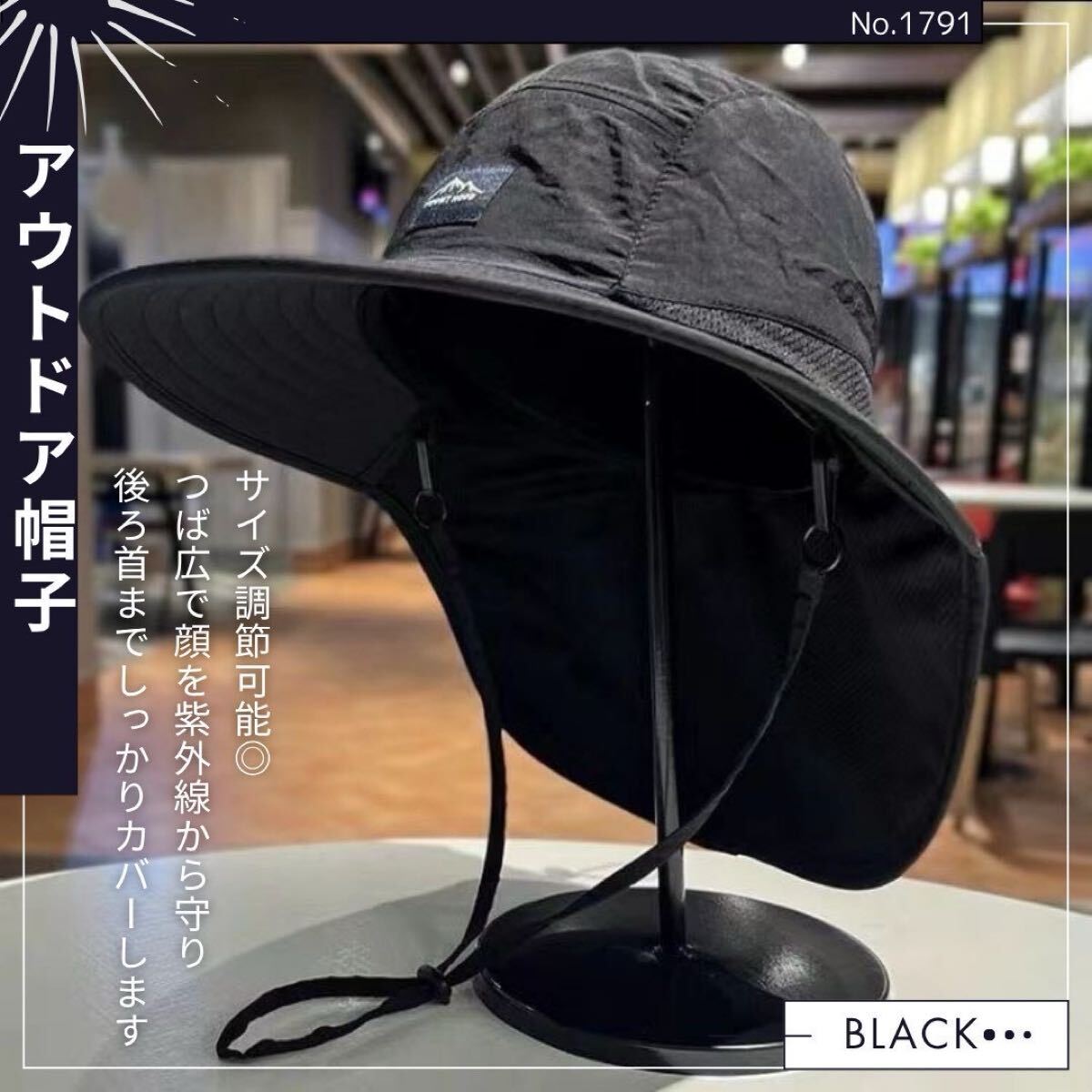 - 新品!大人気!アウトドア帽子 ブラック サファリハット UVカット つば広 日よけ ハット